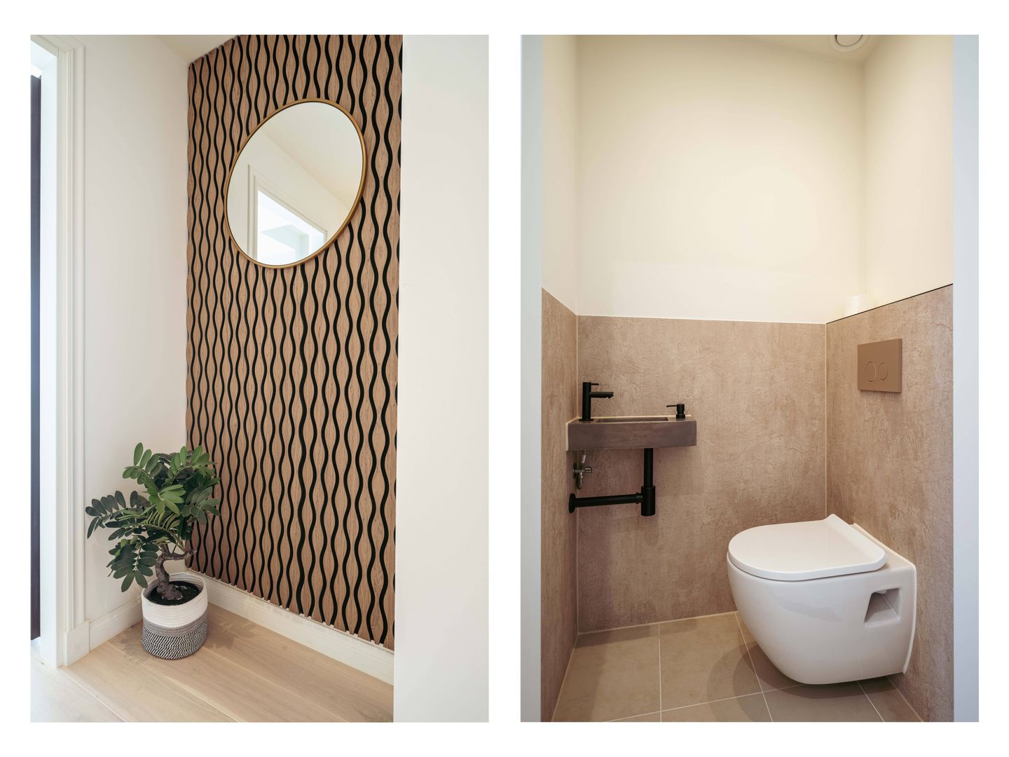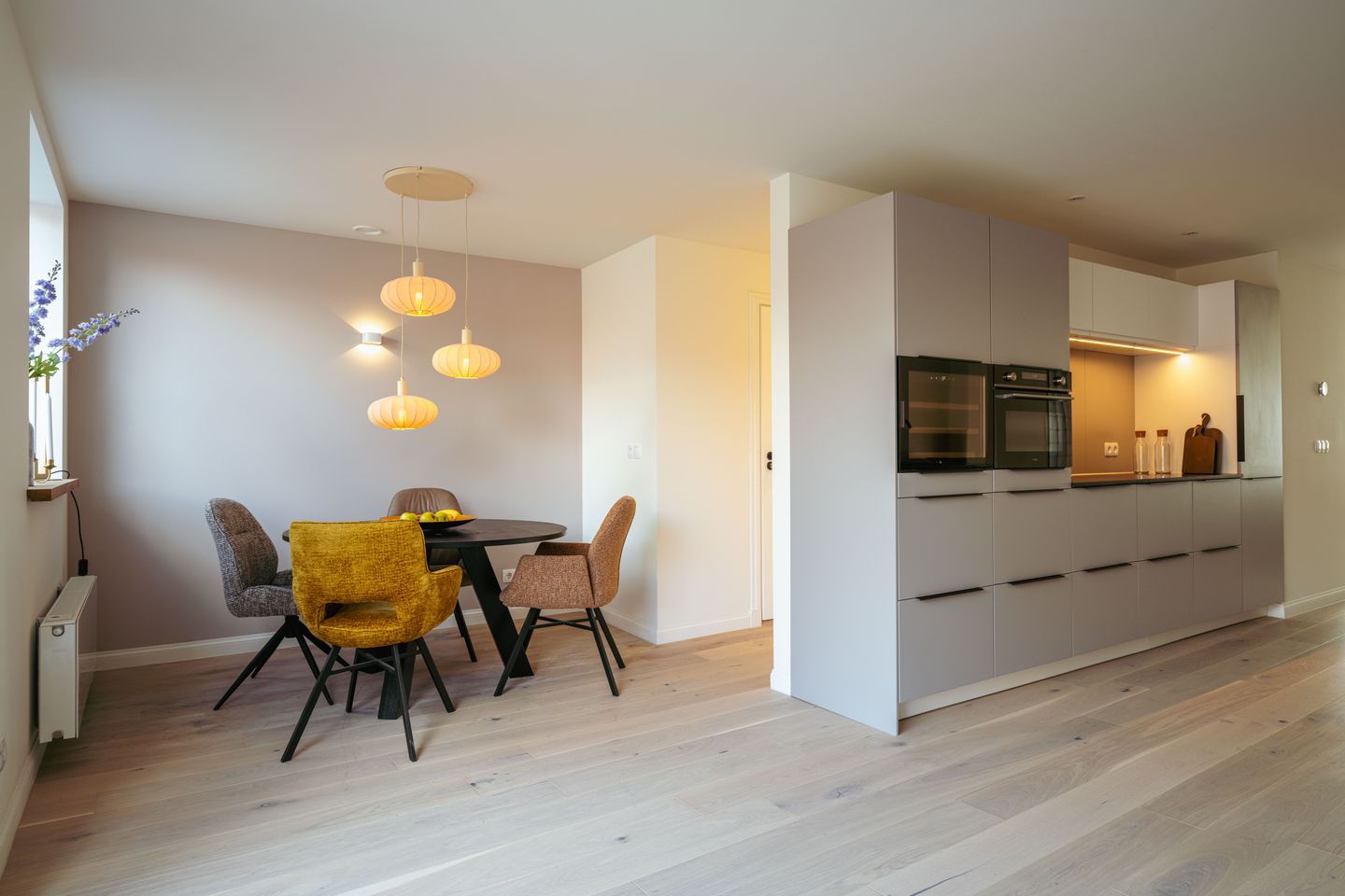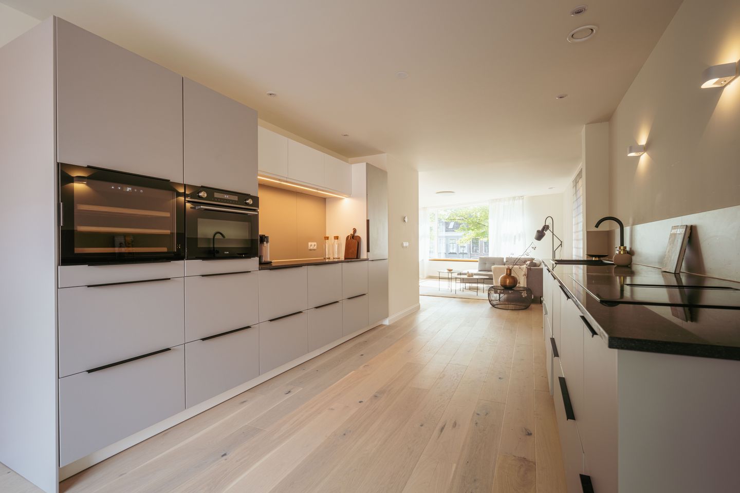 De moderne keuken is een echte eyecatcher. Voorzien van hoogwaardige inbouwapparatuur en een elegante klimaatkast voor uw wijnen, vormt dit het hart van de woning. Hier komen culinaire beleving en stijlvol wonen samen.