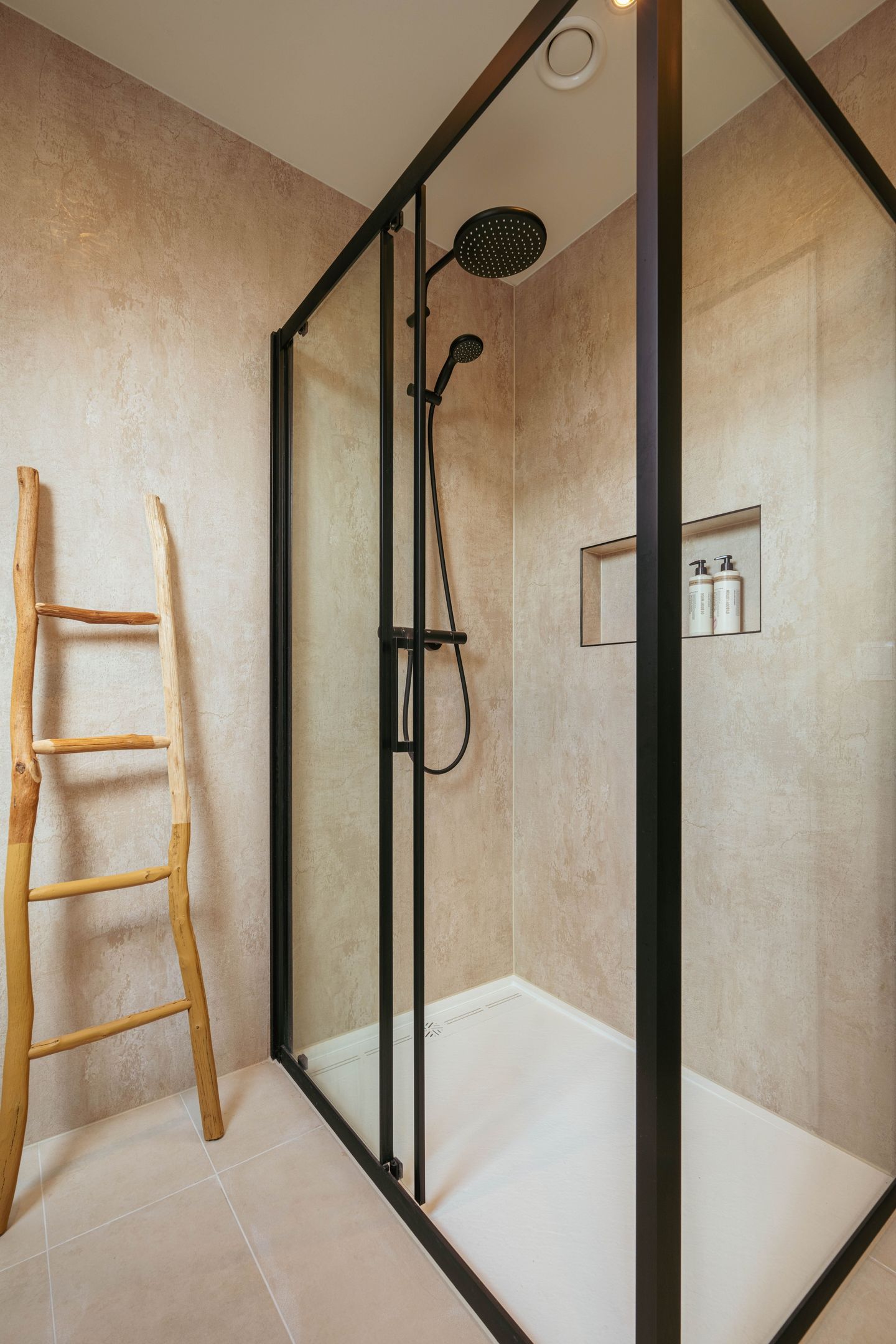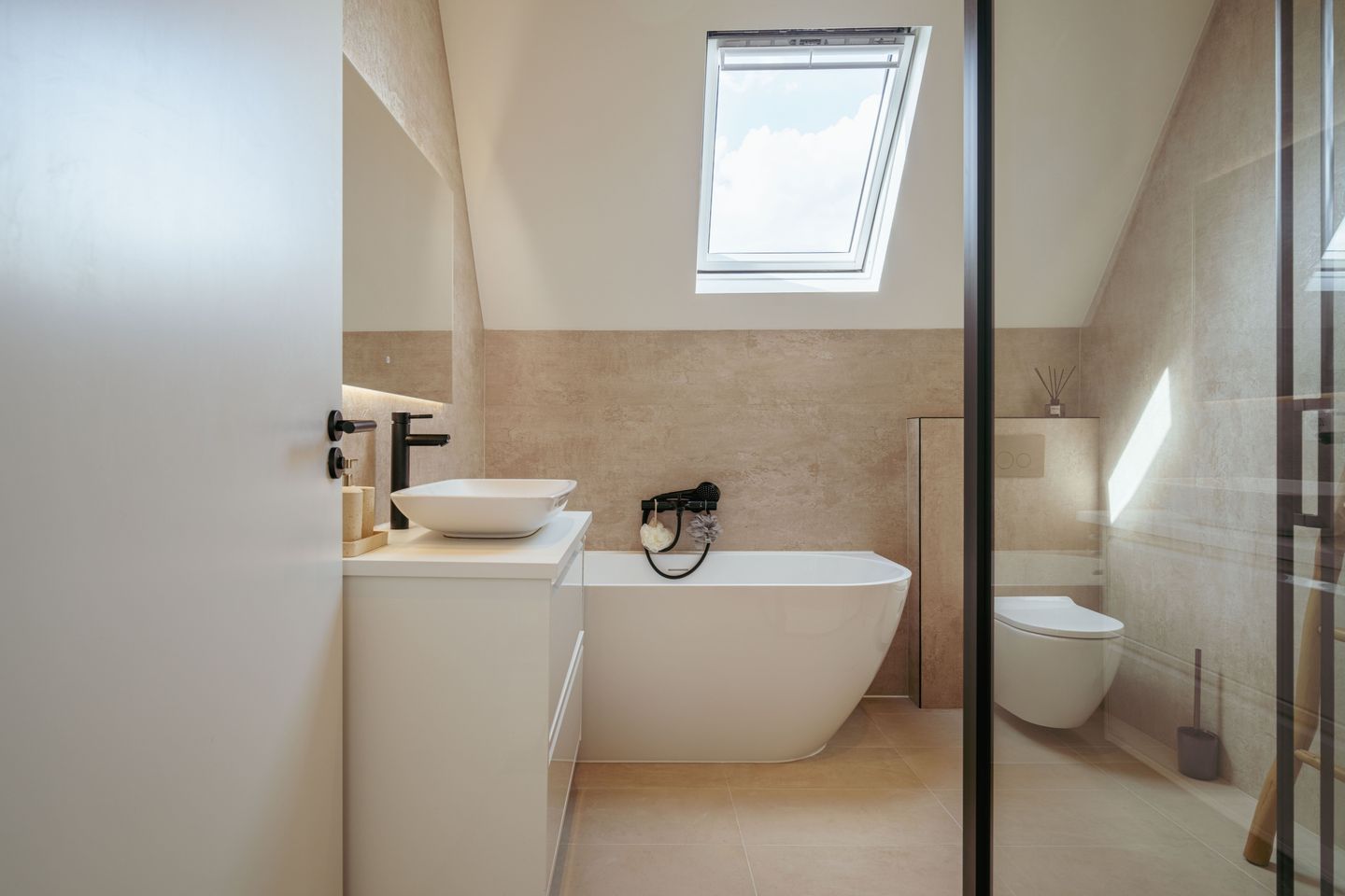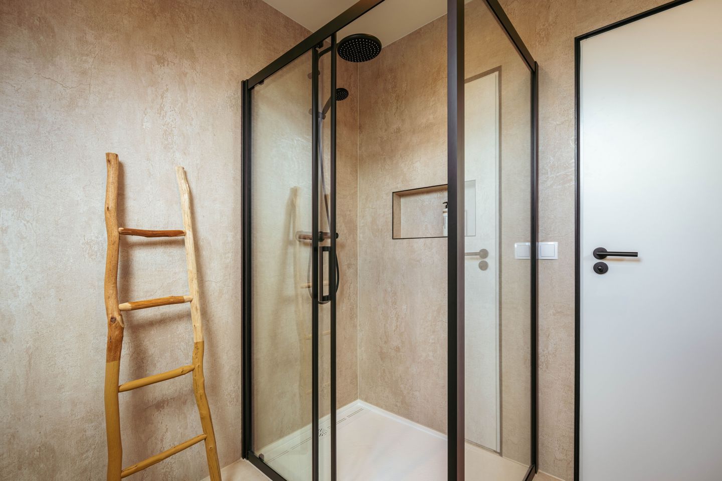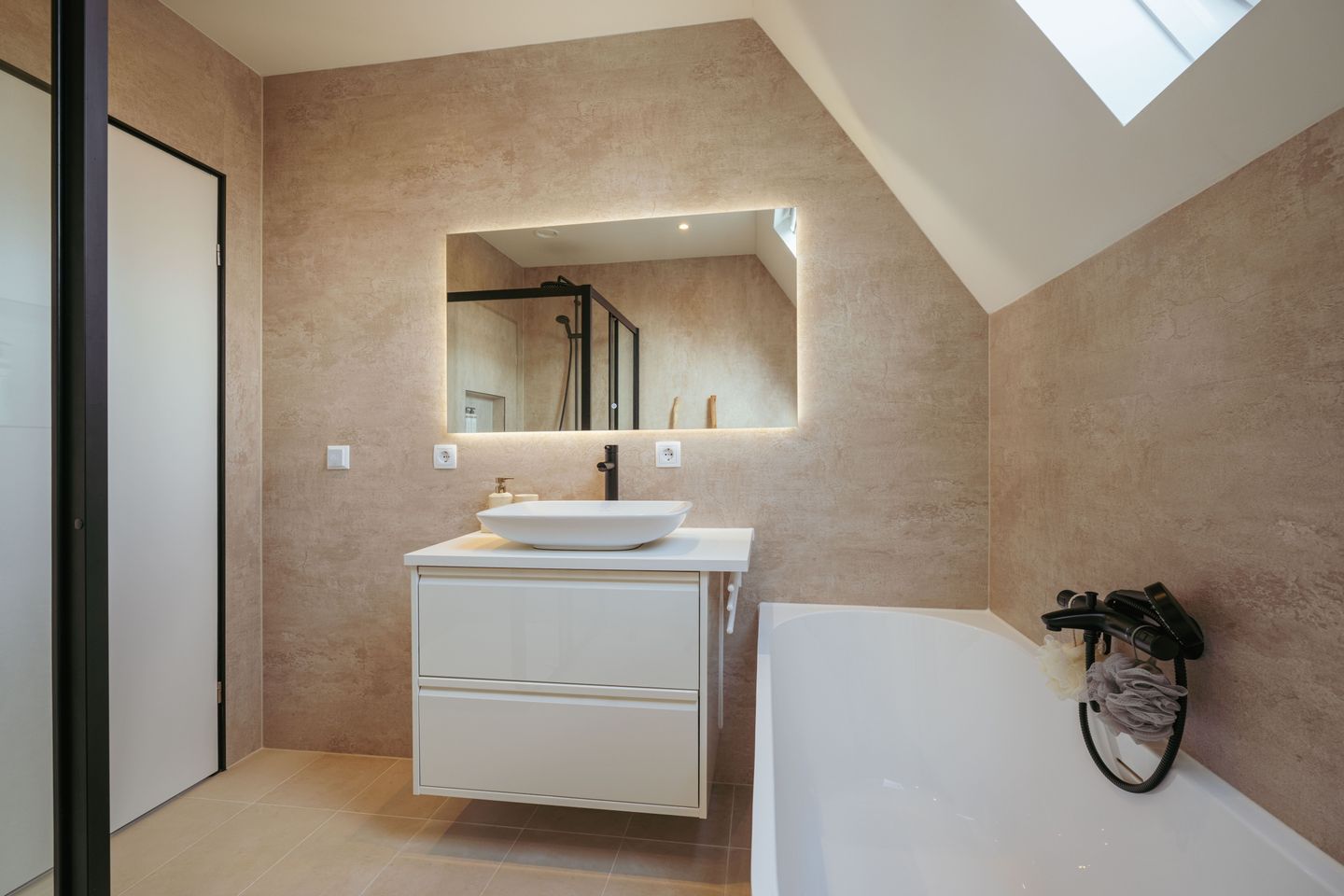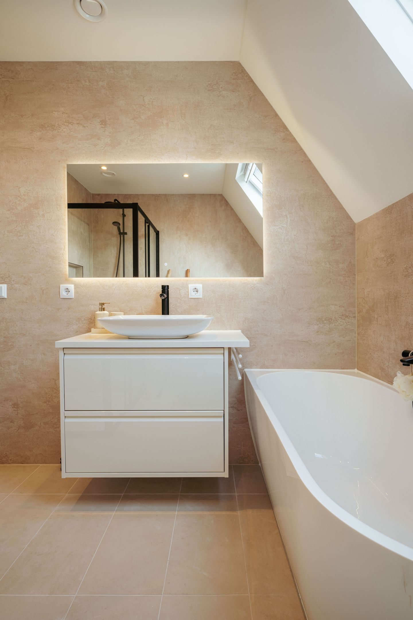 De royale badkamer straalt rust en luxe uit. Een ruime inloopdouche, luxe tegels en hoogwaardige afwerking zorgen voor een hotelwaardige beleving – iedere dag opnieuw.