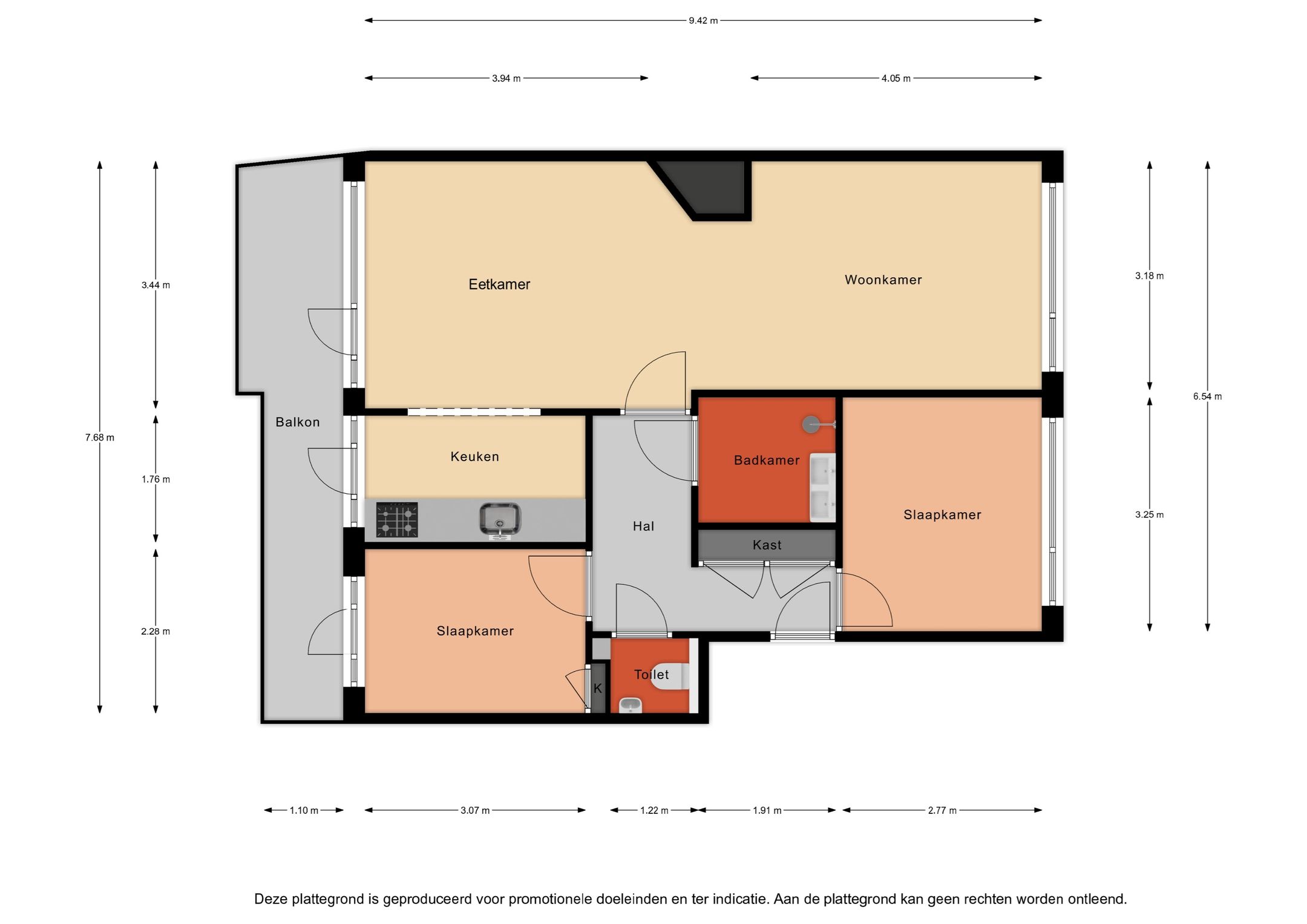 3 kamers (2 slaapkamers)